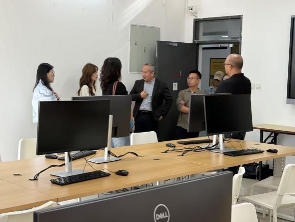 一行,参观了中心媒体设备中心、创新实践实验室、影音剪辑实验室、AI 辅助音乐音频制作实验室、AI 辅助电影制作全流程体验实验室及数据中心,并重点介绍了设备管理、校企合作模式及智能化系统应用成果。