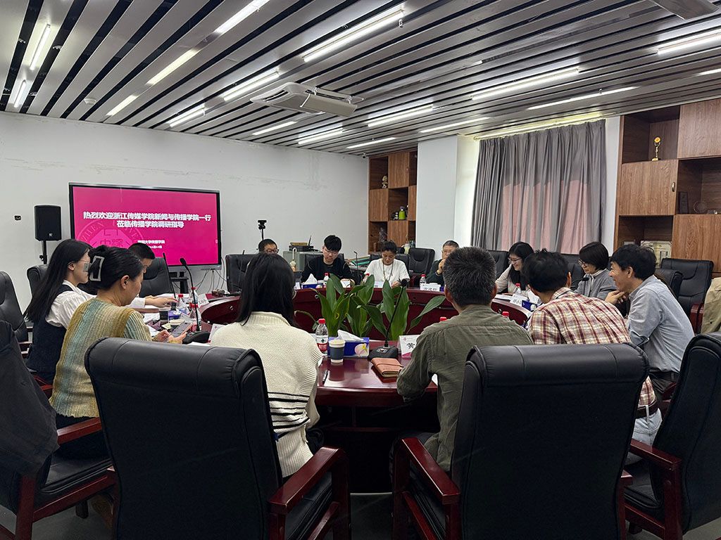 交流环节中,双方教师围绕毕业设计组织与评价、课程设置与教学改革、产学研融合与实践教学体系建设等议题进行了深入探讨。吴怿介绍了新闻系在毕业设计环节的多元化形式与流程管理经验,强调通过深度报道、纪录片、数据新闻等多种形态,提升学生的专业实践能力。汪翩翩分享了网络与新媒体系在校企协同育人、项目化教学与成果转化方面的实践路径与成果。黄文森详细介绍了“传腾班”的建设背景、课程模块与校企协同机制,以及健康传播、虚拟数字人等微专业的建设进展。